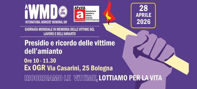 Bologna, 16 aprile 2026 GIORNATA MONDIALE IN MEMORIA DELLE VITTIME DELL’AMIANTO E DEL LAVORO MARTEDI’ 28 APRILE 2026 A Bologna AFeVA Emilia Romagna aps promuove una Manifestazione In ricordo di tutte le Vittime dell’Amianto e del Lavoro Scarica la locandina Concentramento Manifestazione ore 10.00 all’ingresso della vecchia sede OGR BO In Via Casarini, 25 Bologna. …