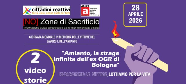 Bologna, 25 aprile 2026 Giornata Mondiale in ricordo delle Vittime dell’Amianto e del lavoro Per iniziativa del Comune di Rubiera e di AFeVA Emilia Romagna aps, Martedì 28 APRILE 2025 ORE 10.00 Si terrà la Commemorazione delle vittime dell’amianto pressola targa posta al PARCO CROCE ROSSAVia De Gasperi Rubiera RE