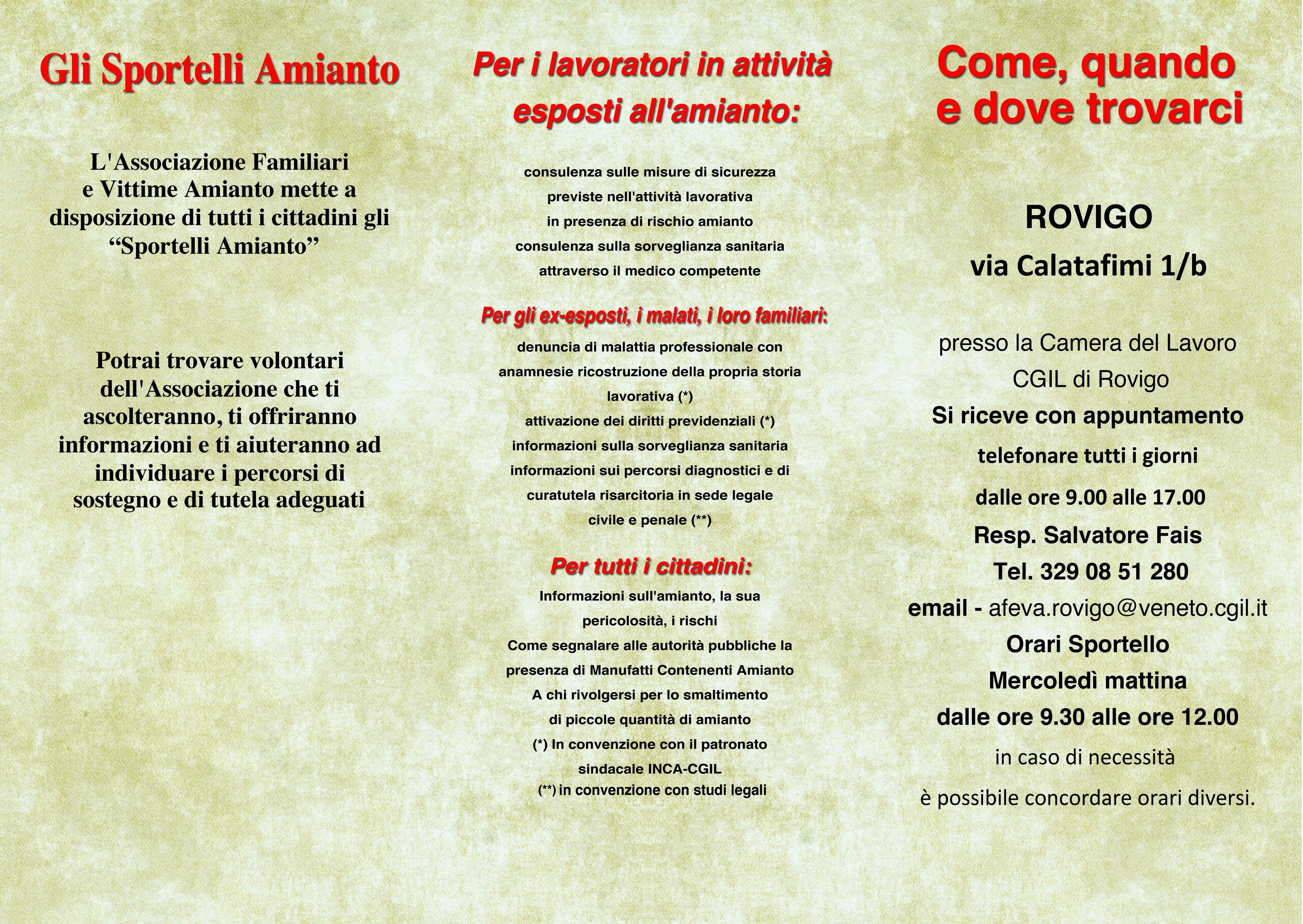 Resp. Salvatore Fais Tel. 329 08 51 280 email – afeva.rovigo@veneto.cgil.it