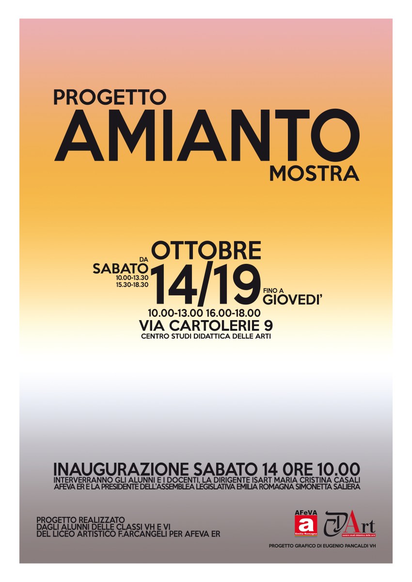 pancaldi Pubblicato 6 ottobre 2017 su 4984 × 7039 in Mostra di grafica liceo artistico “Arcangeli” : Il 14 ottobre 2017 apertura mostra “Comunicare il rischio amianto” ← Precedente