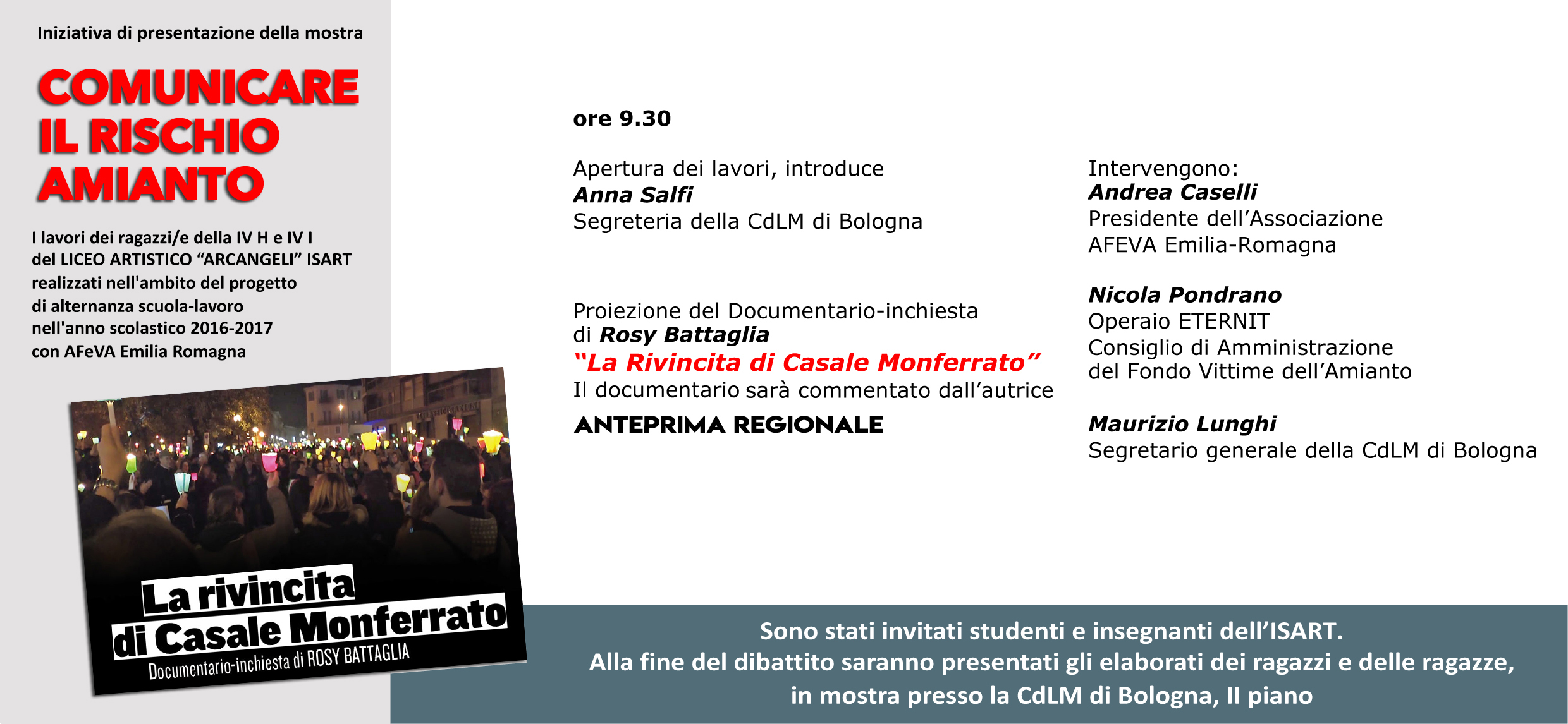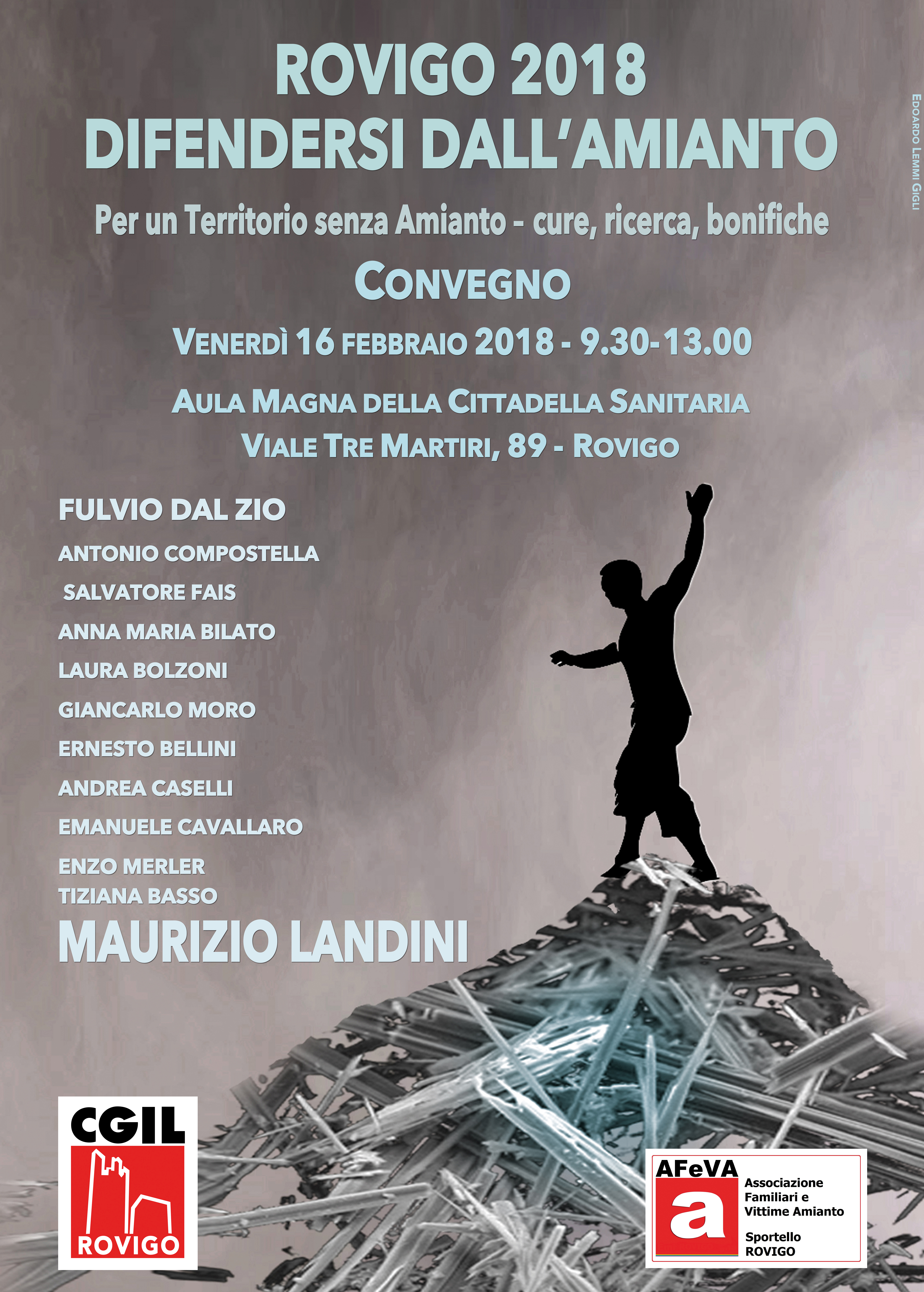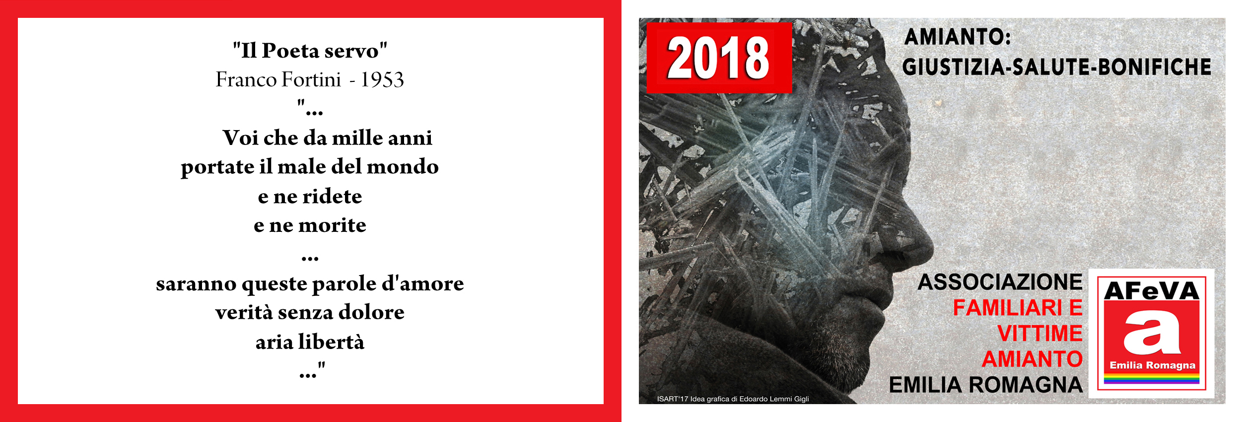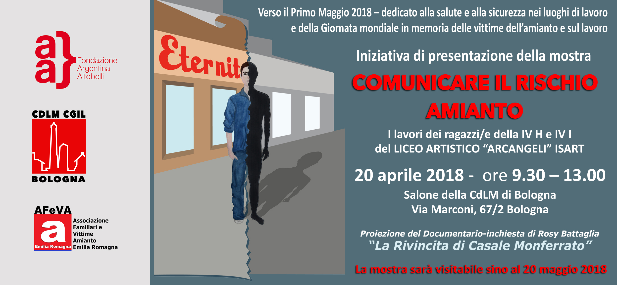 Mentre ci avviamo verso il Primo Maggio 2018 Festa dei lavoratori, quest’anno dedicato alla salute e alla sicurezza nei luoghi di lavoro e verso il 28 aprile 2018 giornata mondiale in memoria delle vittime dell’amianto, la Fondazione Argentina Altobelli, la Camera del Lavoro Metropolitana CGIL di Bologna e l’Associazione Familiari e Vittime Amianto Emilia Romagna convocano
