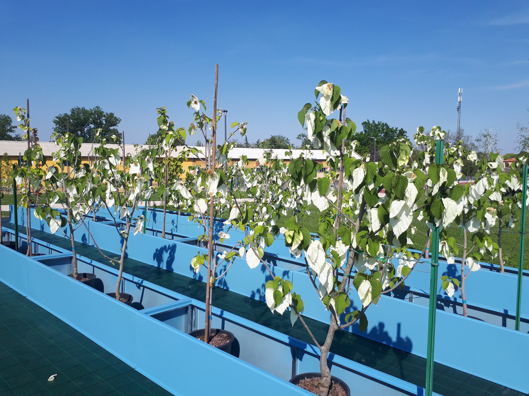 Piante di “davidia Involucrata” detta anche “Albero dei fazzoletti” nel vivaio/monumento nel parco ETERNOT