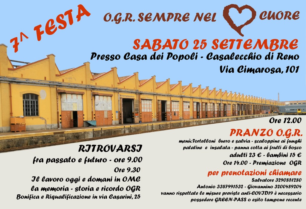 7^ festa OGR – SABATO 25 SETTEMBRE – PRESSO LA CASA DEI POPOLI A CASALECCHIO DI RENO – VIA CIMAROSA, 101