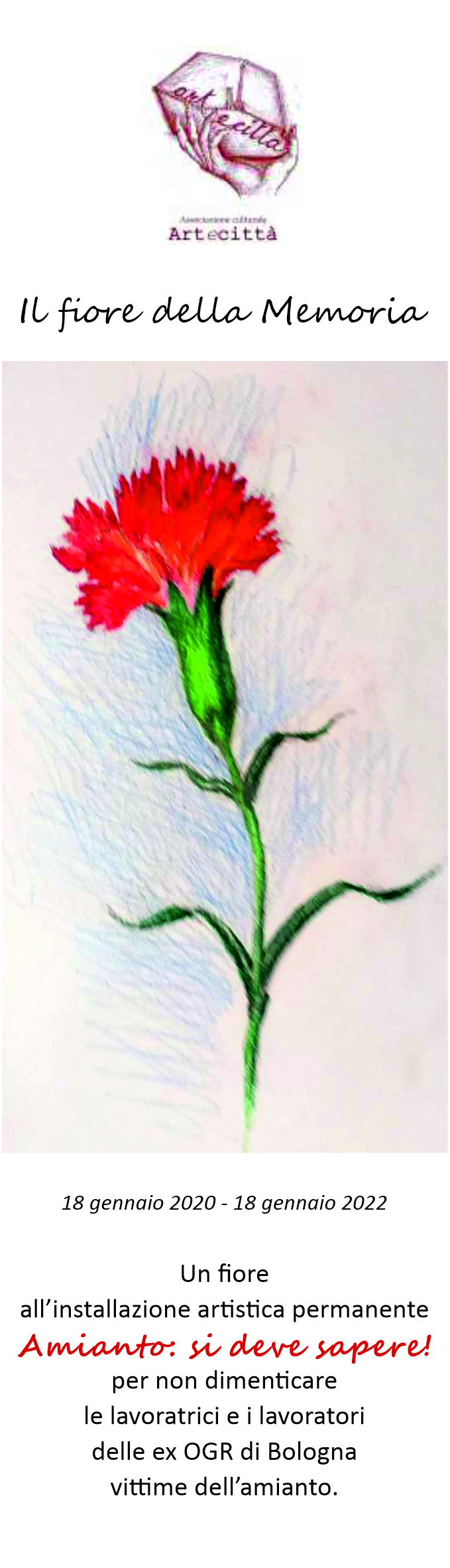 Il giorno 18 gennaio 2022 si è svolta una piccola cerimonia di ricordo, a due anni dall’inaugurazione dell’installazione artistica dal titolo “Amianto, si deve sapere” che racconta la storia dell’amianto in OGR, posta all’angolo di via Malvasia con Via Casarini a Bologna, nei pressi dell’ingresso del vecchio stabilimento delle Officine Grandi Riparazioni. La Pandemia di Covid-19, ha purtroppo impedito la presenza dei Ragazzi e delle Ragazze della Scuola Media De Andrè, quelli che devono raccogliere il testimone della continuità della memoria e della consapevolezza del dramma causato dall’Amianto nelle OGR di Bologna, con i quali attende di essere realizzato un nuovo progetto (Pandemia permettendo).