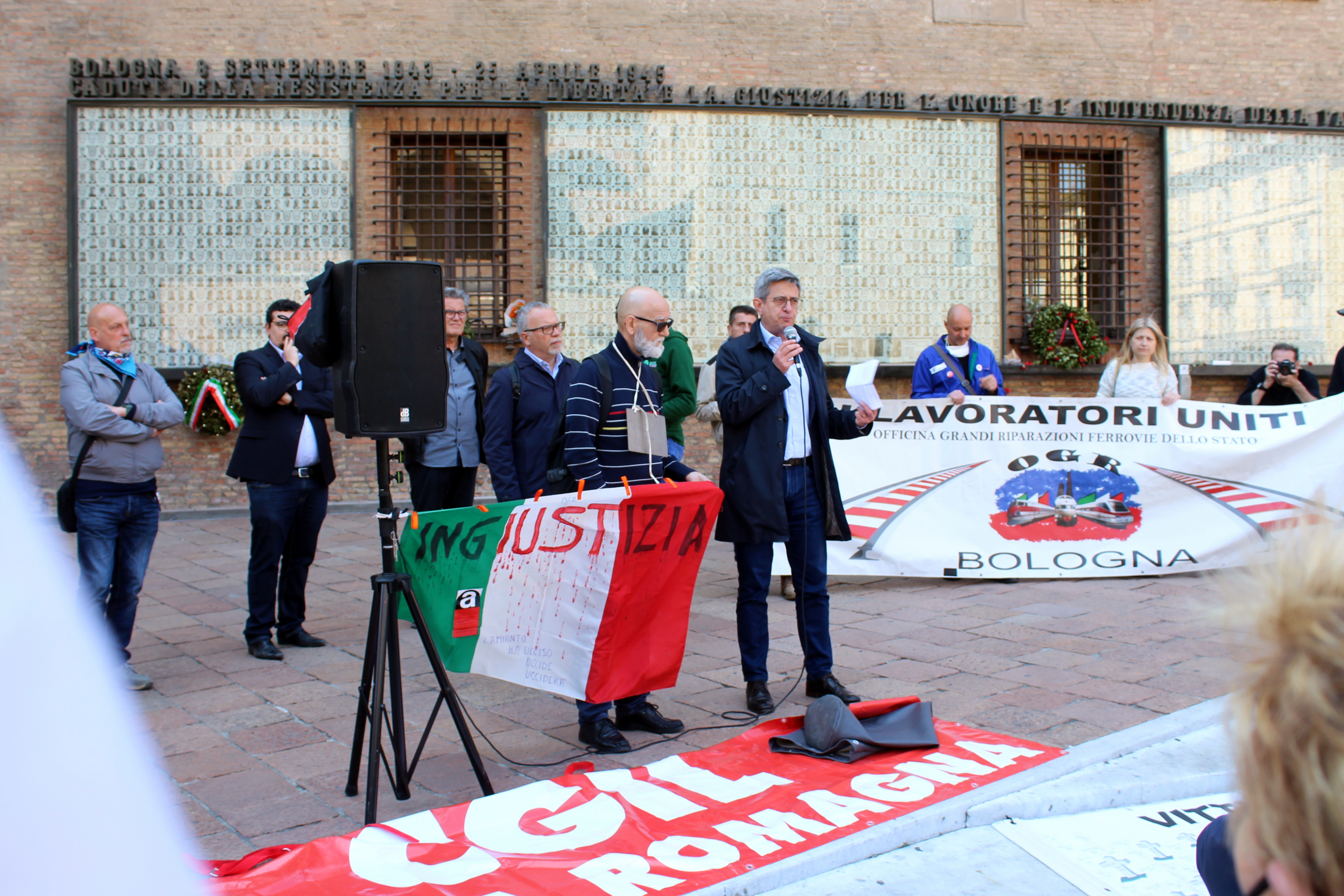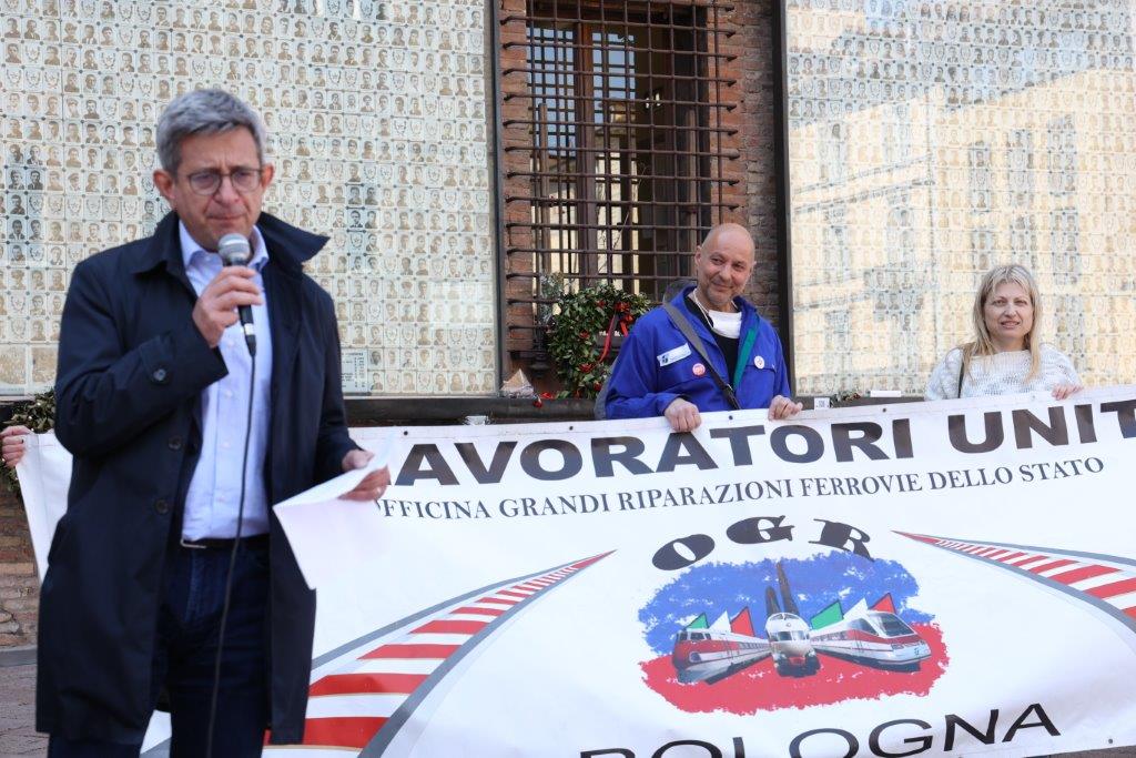 L’iniziativa ha visto la partecipazione di Sergio Lo Giudice in rappresentanza del Sindaco di Bologna, che ha deposto assieme ad Andrea Caselli una corona in Memoria delle Vittime Amianto sotto il Memoriale della Resistenza ed è intervenuto ricordando l’importanza dell’impegno dell’amministrazione comunale sul Piano Amianto e nei progetti della Memoria ed il percorso di Bonifica dell’OGR. Importante partecipazione dei lavoratori OMC-Trenitalia coi loro delegati sindacali, assieme a rappresentanze dei lavoratori (sono intervenuti Andrea Caselli per la CGIL ER, William Ballotti CISL ER, Massimo Zanirato UIL ER, un rappresentante dei lavoratori edili, di RFI , un lavoratore OGR) e dell’Associazione Familiari e Vittime dell’Amianto Emilia Romagna (è intervenuto Salvatore Fais).