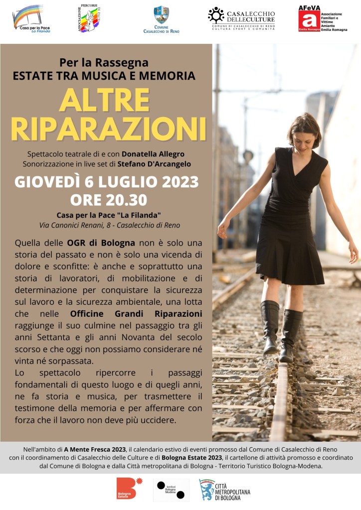 Ore 21.15 – 22.15 | Spettacolo teatrale “Altre Riparazioni – Storia e lotte delle Officine Grandi Riparazioni FF.SS. di Bologna” di e con Donatella Allegro – Ingresso Libero
