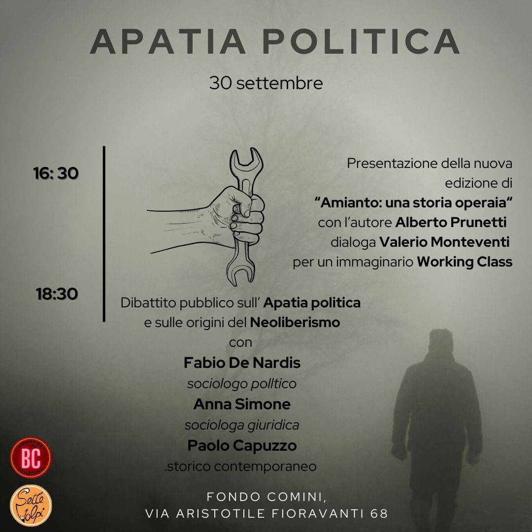 A seguire, alle ore 18.30 il dibattito pubblico sull’ “Apatia politica e sulle origini del neoliberismo” con: