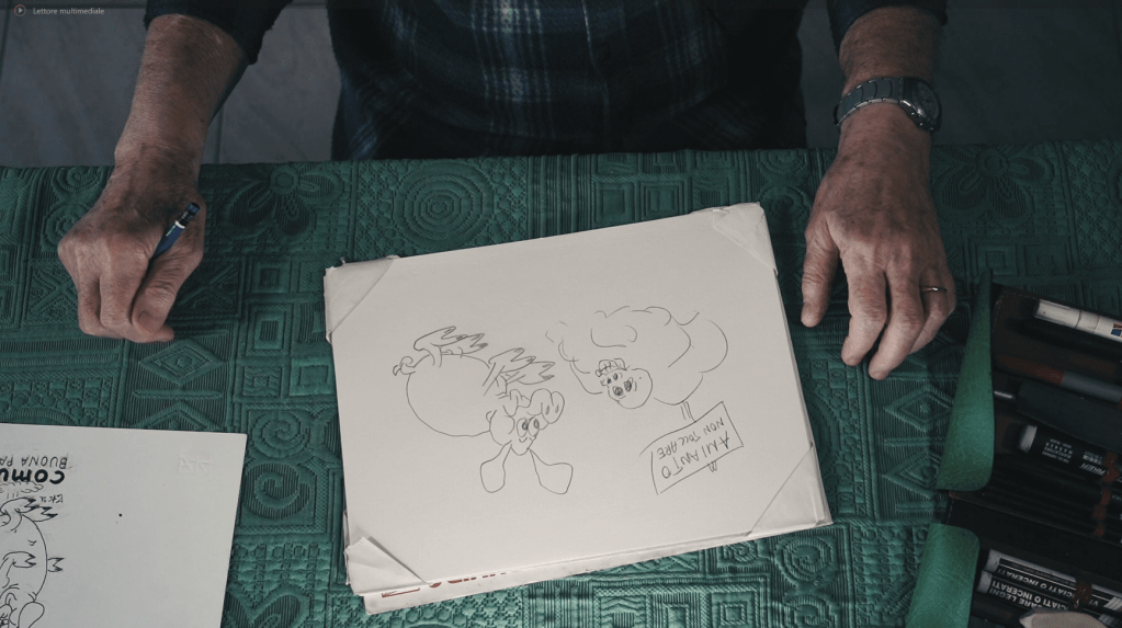 Walter era anche disegnatore di vignette umoristiche, centinaia di vignette che hanno attraversato tutta la storia delle Officine. I suoi disegni, erano densi di ironia ed autoironia, tanto che il suo alter ego sempre presente nelle illustrazioni era un maialino, una voce narrante che ci rivelava il suo punto di vista soggettivo.
