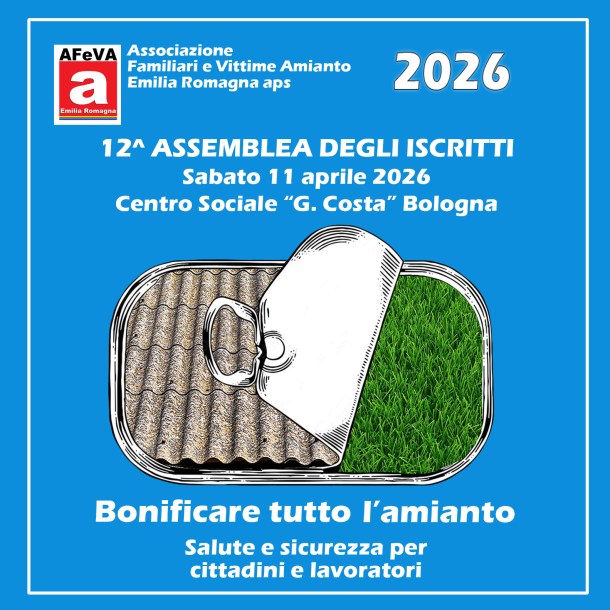 è convocata l’Assemblea ordinaria degli Iscritti ad AFeVA – Associazione Familiari e Vittime Amianto Emilia Romagna aps.